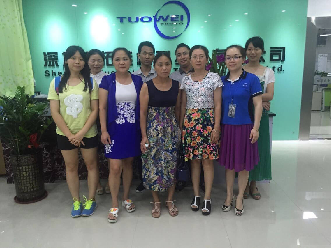 6月12日,吳總帶著他們公司一行人風塵仆仆地從長沙來到了拓維模型,我們銷售經理熱情地接待了他們,并陪同他們參觀了我們公司的車間,當他看到我們車間有28臺cnc設備時,非常的震驚,他說:“之前沒有看過規模這么大的手板廠,平時所參觀的手板廠,擁有十幾臺cnc設備的都已經非常少見了”。接下來,我們業務經理跟他詳細地分析了手板的制作方案,包括相關的表面處理工藝以及交期,吳總對我們的服務態度很認可。